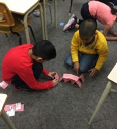 Students are experimenting with different ways to build card towers. The focus of this was to demonstrate team work and assess this using our group work rubric.